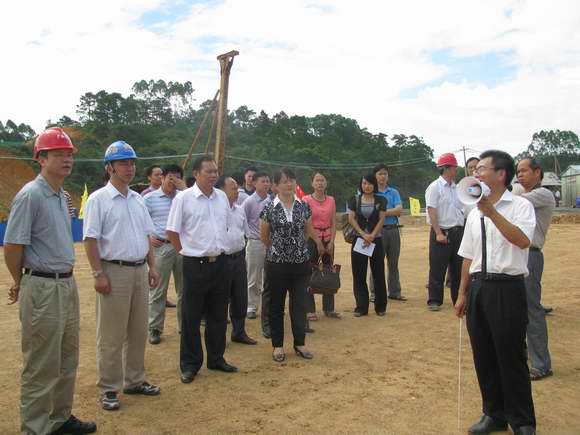 6月20日,自治區(qū)交通運(yùn)輸廳副廳長(zhǎng)李小林(左一)一行視察我公司參建的防城港至東興公路、欽州沙井大道、沿海高速公路改擴(kuò)建茅尾海出口工程項(xiàng)目。