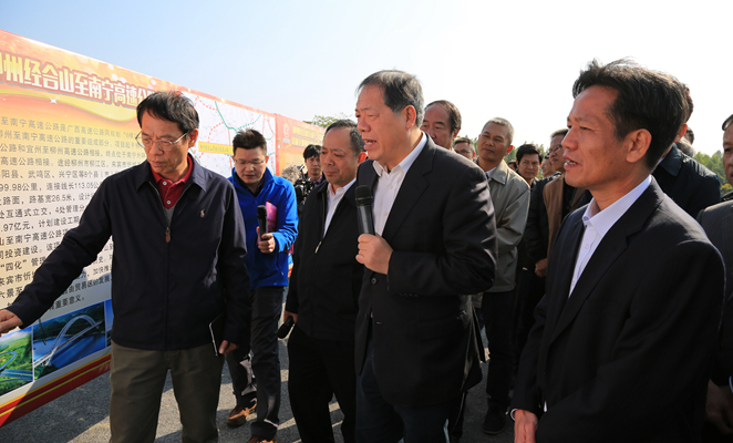 在柳州經(jīng)合山至南寧高速公路(簡(jiǎn)稱新柳南高速公路)開(kāi)工現(xiàn)場(chǎng)會(huì)主會(huì)場(chǎng)上,集團(tuán)公司黨委書(shū)記、董事長(zhǎng)朱堅(jiān)和向自治區(qū)人民政府副主席陳剛、自治區(qū)交通運(yùn)輸廳副廳長(zhǎng)梁毅等與會(huì)領(lǐng)導(dǎo)介紹了新柳南高速公路項(xiàng)目情況,以及集團(tuán)公司目前承建的自治區(qū)重大建設(shè)項(xiàng)目鐘山至來(lái)賓、來(lái)賓至巴馬、融水至河池等3個(gè)縣縣通高速公路項(xiàng)目建設(shè)情況,朱堅(jiān)和表示,集團(tuán)公司致力于成為自治區(qū)黨委、政府最可信賴的交通基礎(chǔ)設(shè)施投資運(yùn)營(yíng)力量,全力以赴完成各重大項(xiàng)目建設(shè)任務(wù)。