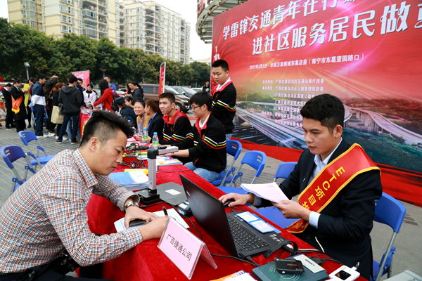 3月3日,集團(tuán)公司團(tuán)委組織廣西捷通公司、交通一卡通公司、票通公司廣大團(tuán)員青年聯(lián)合自治區(qū)交通運(yùn)輸廳團(tuán)委在南寧市東葛路永凱現(xiàn)代城前廣場(chǎng)開展“學(xué)雷鋒交通青年在行動(dòng),進(jìn)社區(qū)服務(wù)居民做貢獻(xiàn)”活動(dòng),為廣大社區(qū)居民送去了溫暖與實(shí)惠。