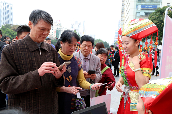 身著統(tǒng)一服裝,肩披綬帶、胸扣團(tuán)徽的ETC推廣青年突擊隊(duì)員向過往的行人宣傳ETC的相關(guān)知識(shí),耐心解答車主朋友們的疑問,并現(xiàn)場(chǎng)演示ETC八桂行卡的安裝過程,使廣大社區(qū)市民對(duì)ETC有了一個(gè)初步的認(rèn)識(shí)。6名身著靚麗壯族服飾瞬間吸引住了往來市民的眼光,紛紛前來咨詢業(yè)務(wù)?;顒?dòng)期間,一卡通公司客服人員熱情地向社區(qū)居民發(fā)放了100張“桂民卡·體驗(yàn)卡”,亦有不少市民被桂民卡精美的版面設(shè)計(jì)和強(qiáng)大的互聯(lián)互通功能所吸引,紛紛在現(xiàn)場(chǎng)辦理購卡及充值業(yè)務(wù)。票通公司客服人員則向社區(qū)居民推介了廣西人自己的道路客運(yùn)網(wǎng)絡(luò)售票平臺(tái)——“桂客行”,耐心地向市民解析平臺(tái)功能、覆蓋范圍等,并協(xié)助市民下載“桂客行”手機(jī)APP。