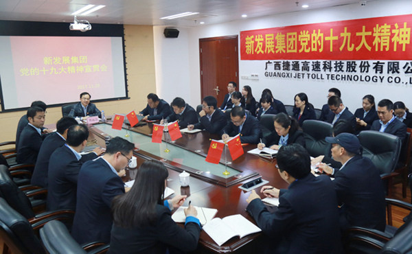 11月28日上午,集團公司總會計師鄧遠志來到捷通公司宣講黨的十九大精神,并開展工作調(diào)研。捷通公司黨總支班子及總部人員和南寧市自營網(wǎng)點負責(zé)人近70人參加了學(xué)習(xí)。