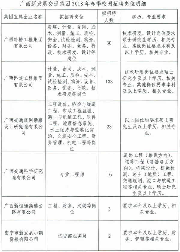 廣西新發(fā)展交通集團2018年春季校園招聘宣講會時間及地點安排: