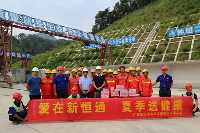 8月中旬,新恒通公司到賀巴高速、融河高速開(kāi)展“送清涼”慰問(wèn)活動(dòng),在炎炎夏日給一線(xiàn)的職工送上絲絲涼意與關(guān)懷。